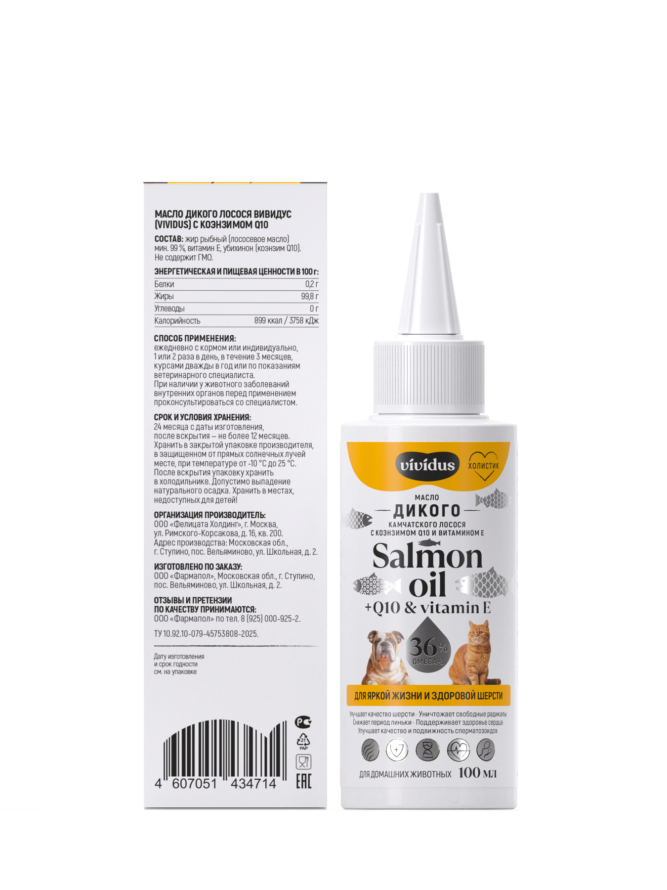 Состав: Лососевое масло 99,0% — 99,9%, витамин Е, убихион (коэнзим Q10)