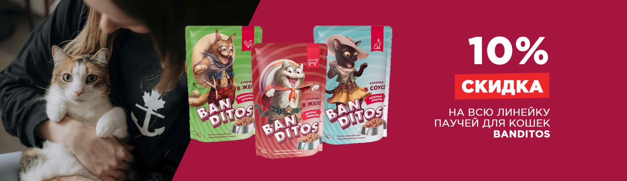 Скидка 10% при покупке влажного корма Banditos (ассортимент см. ниже).