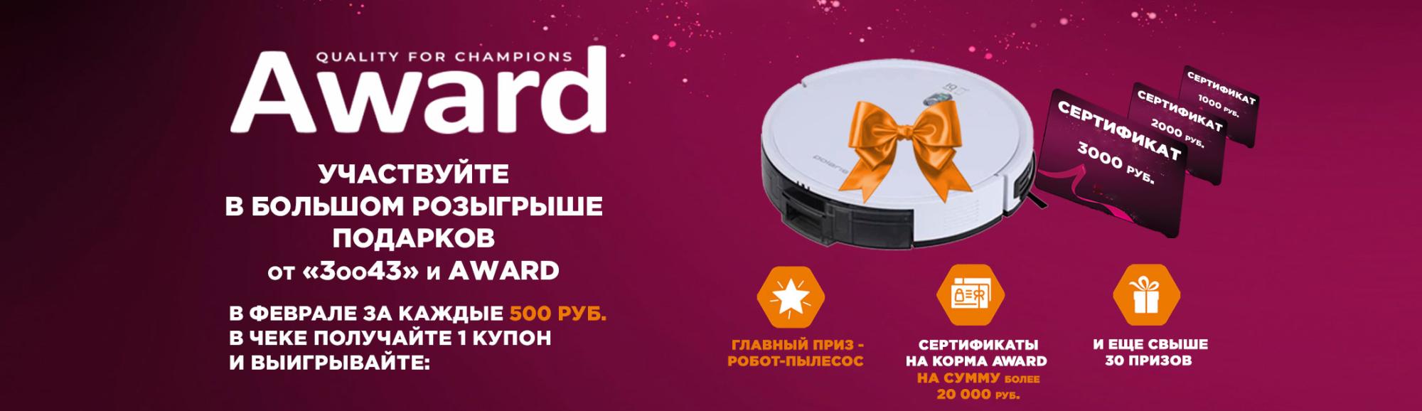 ♦Сертификаты на корма Award на сумму более 20 000 руб.
