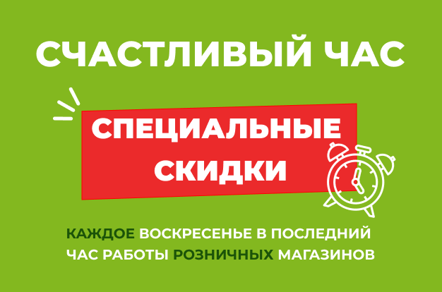 Счастливый час. Скидка 10% на товары и +5% на бонусную карту